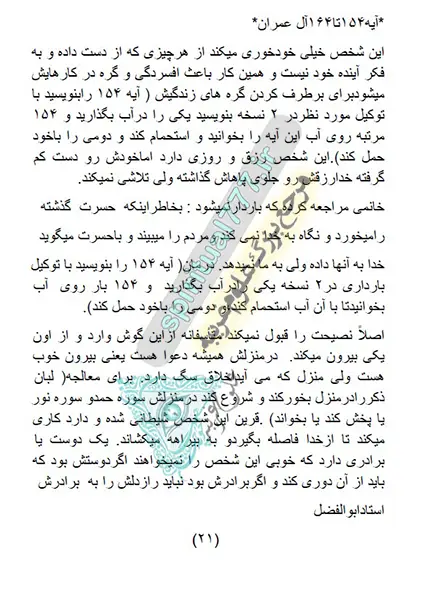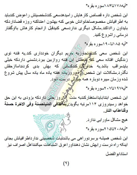 - شناسایی انواع مشکلات: تفسیر آیات قرآن برای درک مسائل مختلف از جمله سحر دفنشده، چشم زخم، قرین سوء، مشکلات شخصیتی، بیبرکتی در رزق و روزی، و حتی مشکلات ناشی از خطاهای اخلاقی.
