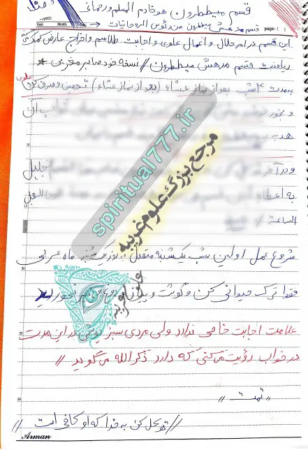 - طلسم احضار موکلین و خادمین روحانی